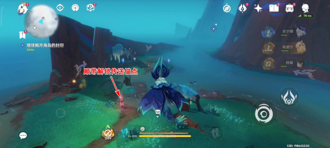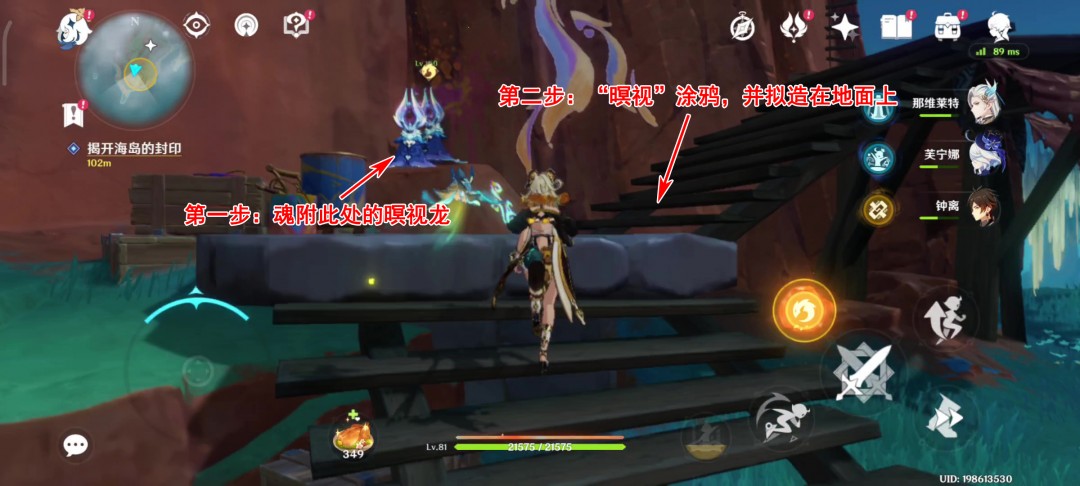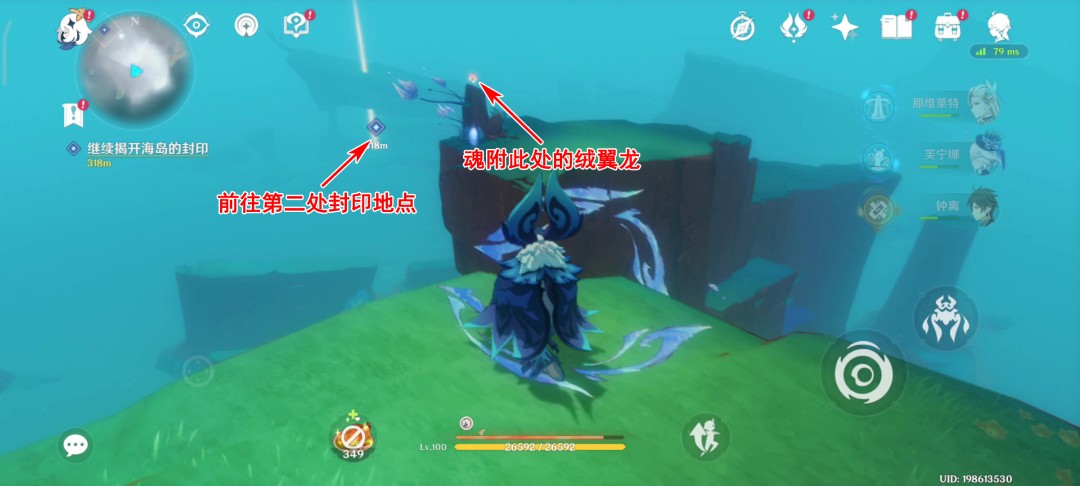 1、完成抵触封印位置解谜后,魂附下图位置的绒翼龙,前往第二处封印位置。