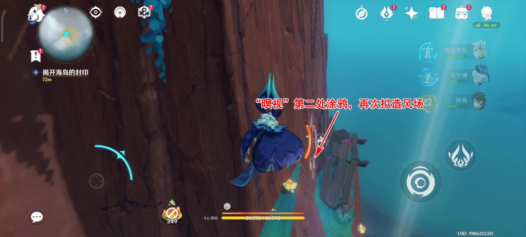 3、利用风场飞向半山腰,探测第二处涂鸦并再次拟造风场。