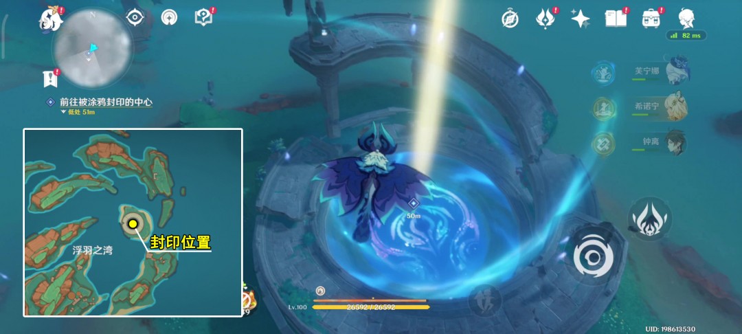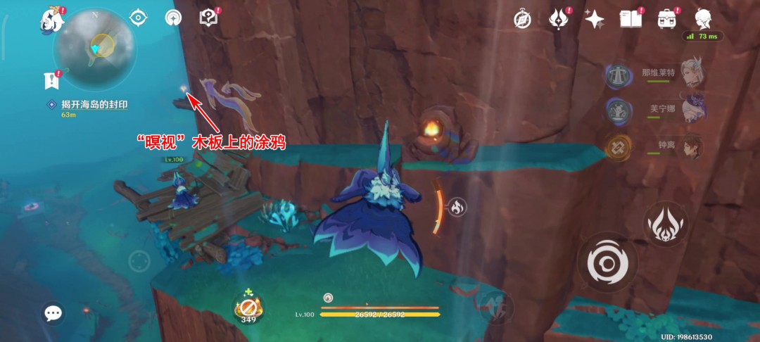 完成三处封印的解谜后,从第三处封印位置飞回接取任务的地方。来到涂鸦封印的中心后,即可进入涂鸦封印内部。