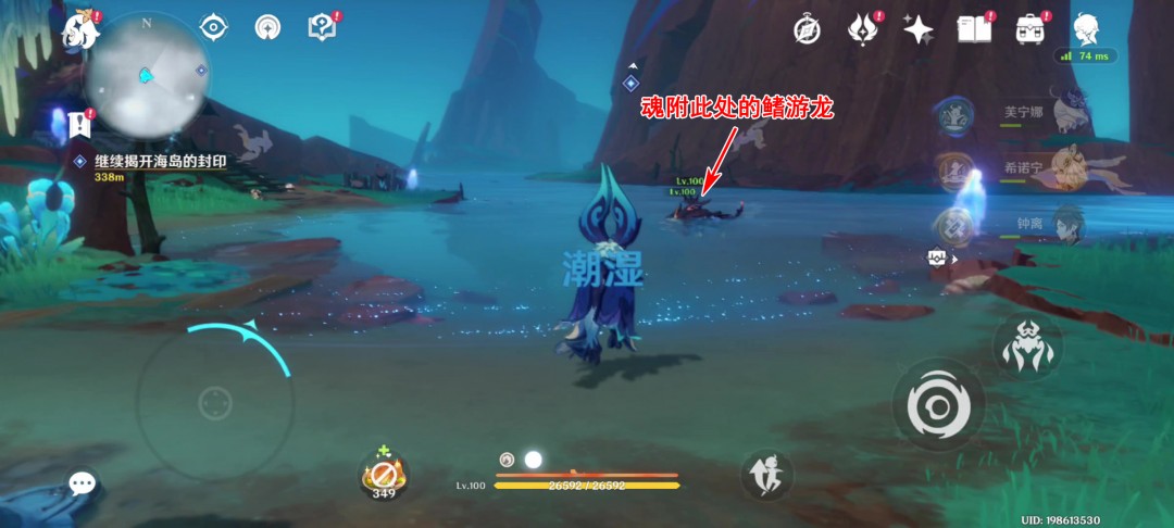 1、回到地面后来到水边,魂附鳍游龙前往第三处解谜地点。
