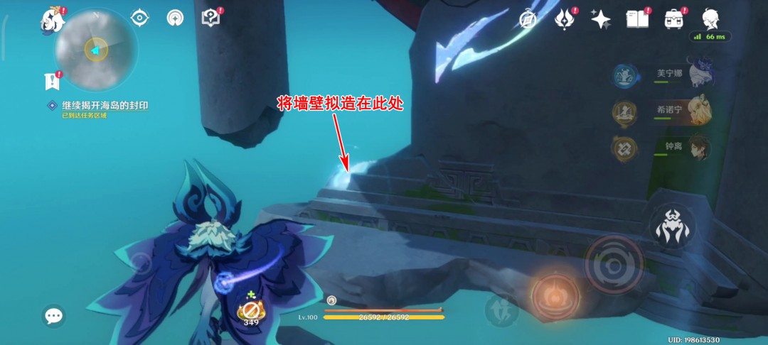 6、随后回到空中废墟下层,将墙壁拟造在如图所示的位置。