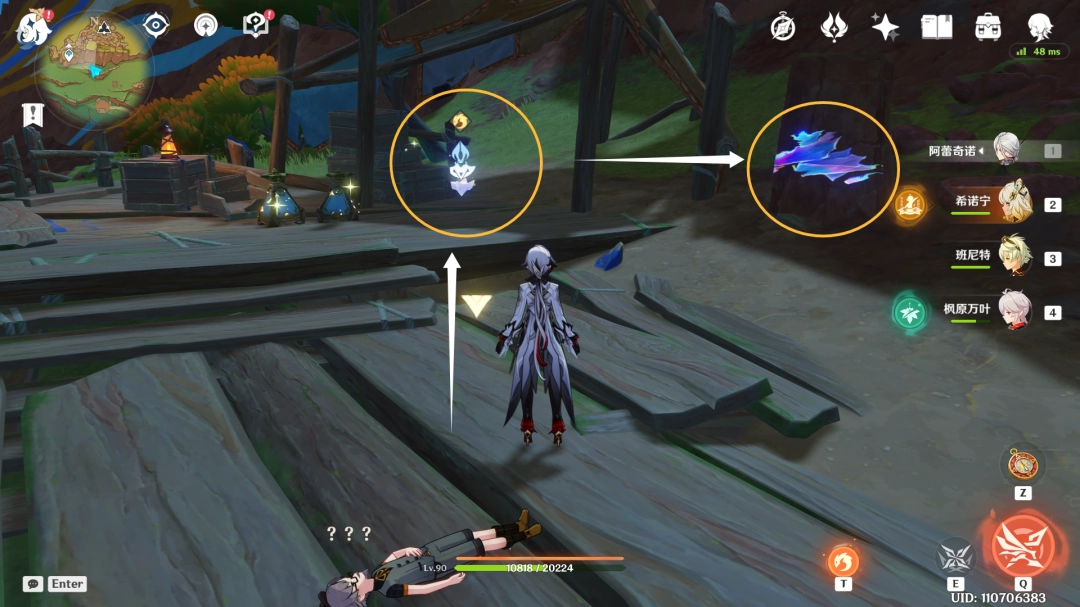 共4个位置,最后一个在大石头上,可以E遁地,从旁边绕一下上去