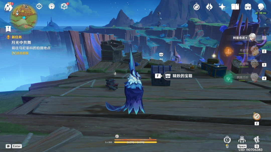 可得100原石+1精致宝箱+1成就+1摆设