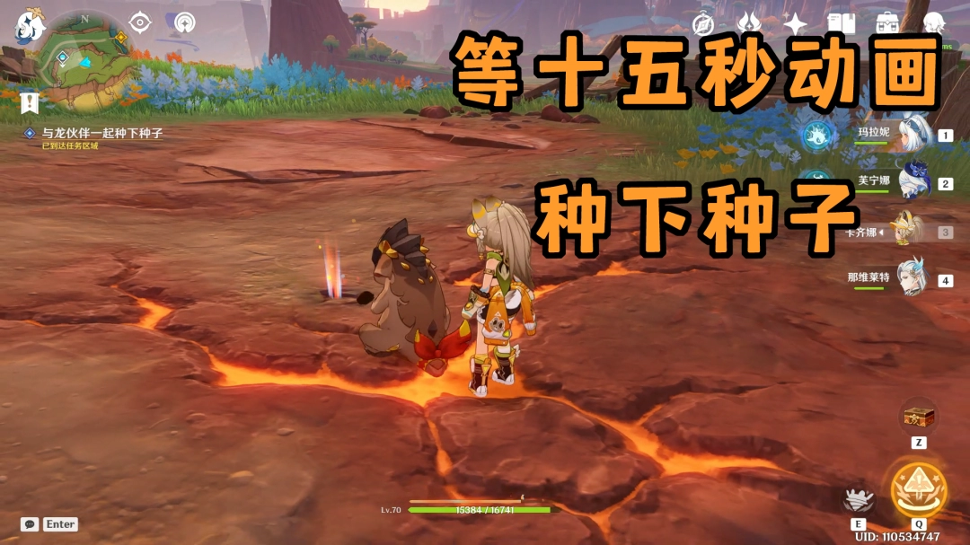调查完后能捡到种子,和小龙一起种下吧,要等大约15秒。