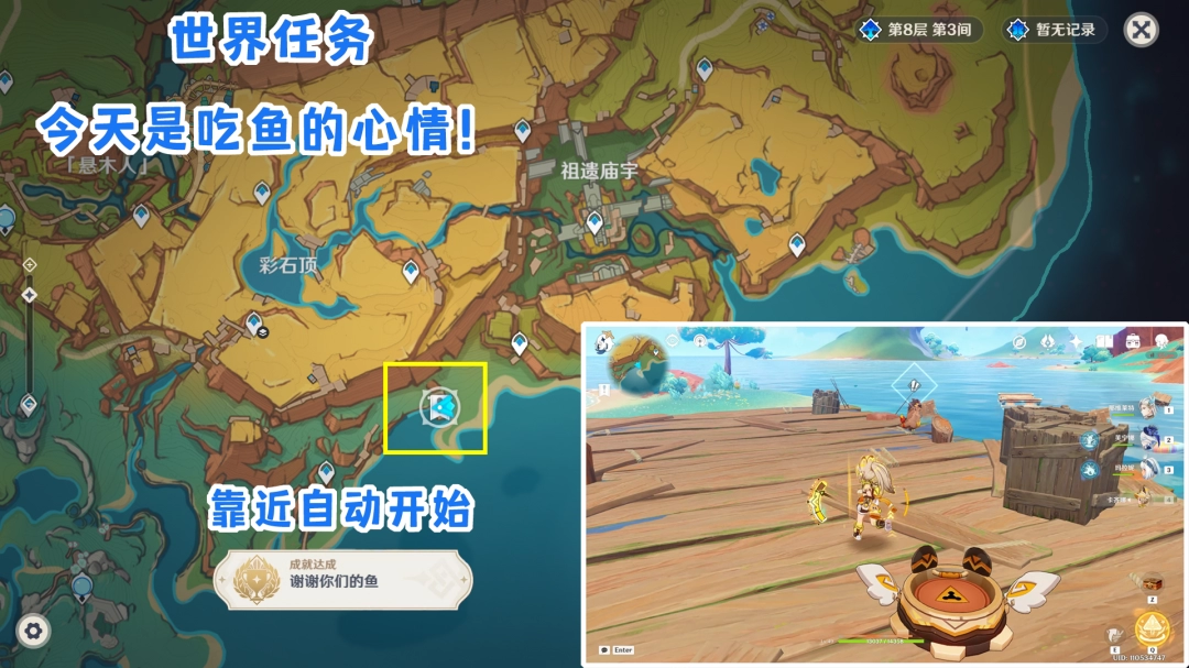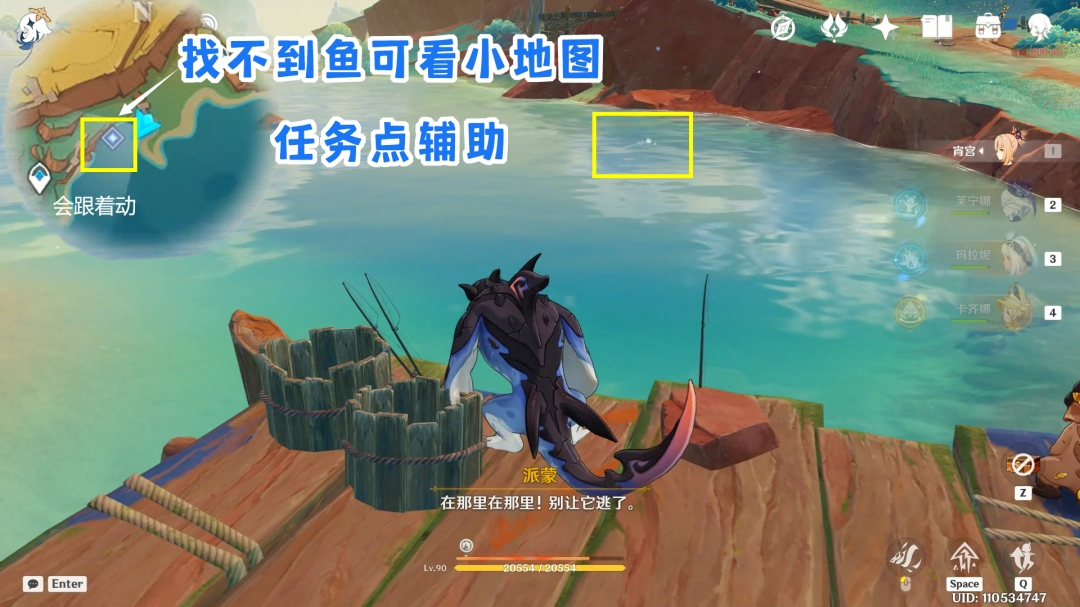 陪派蒙和小龙抓鱼,三分钟就能获得20原石与成就「谢谢你们的鱼」