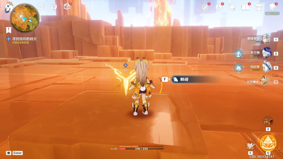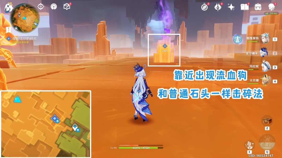 之后需要旅行者去寻找烙印的碎片,具体就算打碎石头就行,朝东南方向就能看见第一个。