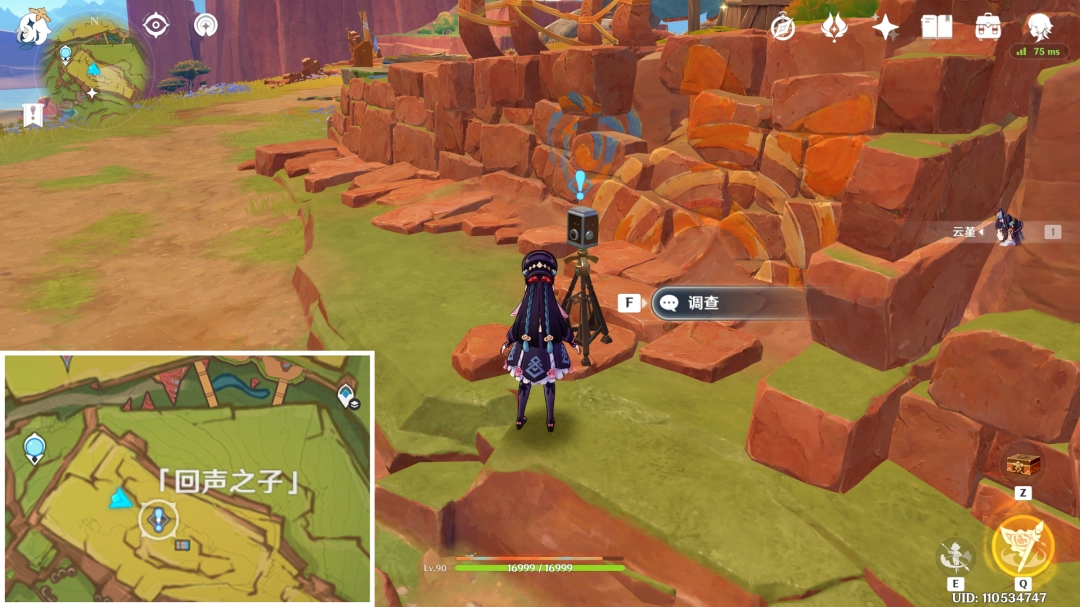 爬上来就能看见带感叹号的照相机,点击「调查」开始任务