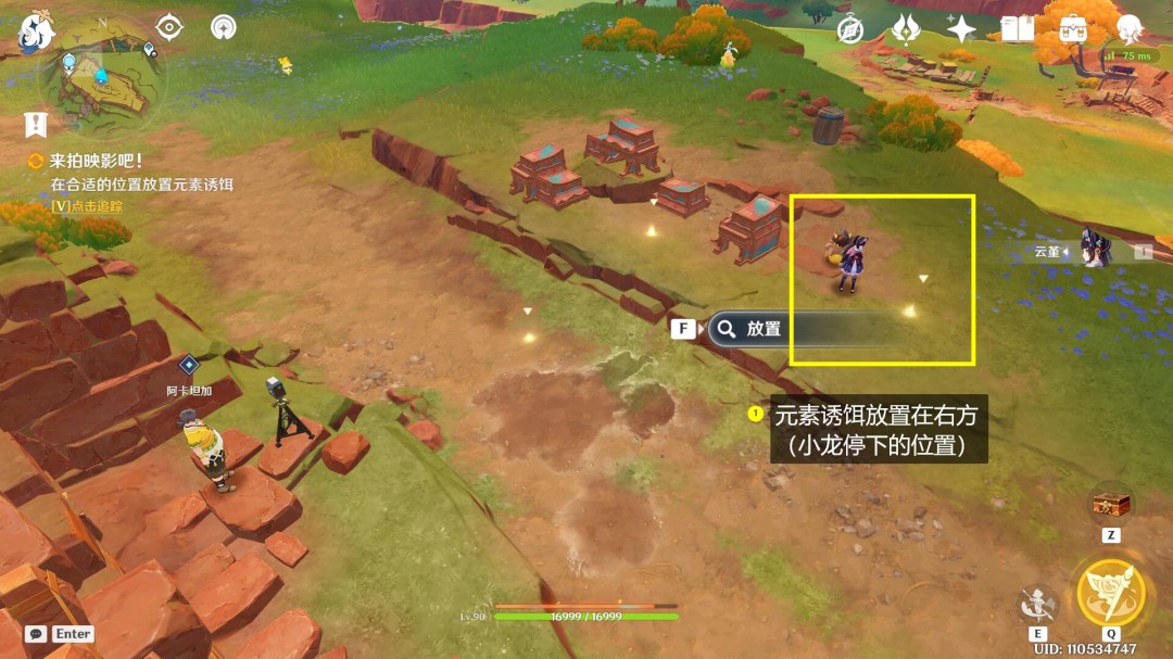 等小龙就位后,靠近诱饵点击就位「」便能开拍。