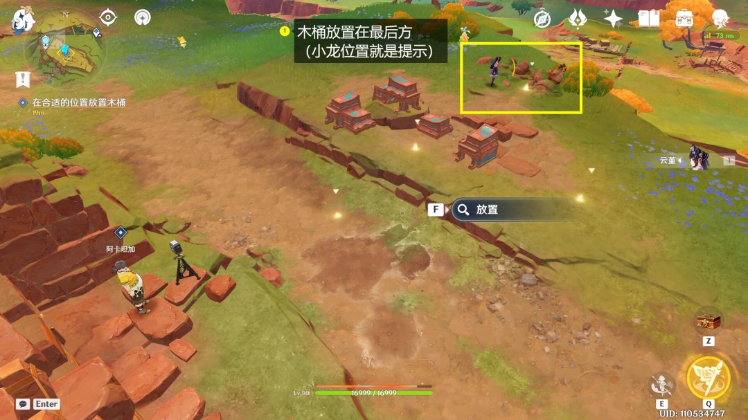 木桶放置在片场最后方就行,小龙会走到目标位置提示你。