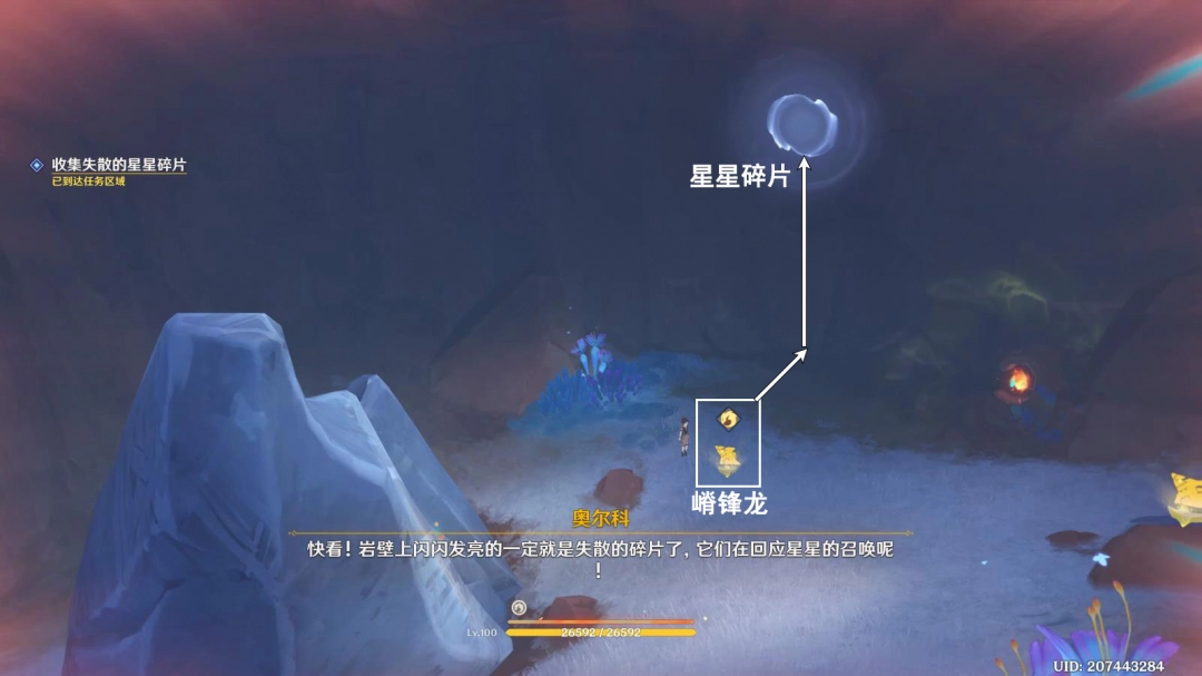 龙之魂附嵴锋龙,攀爬岩壁,使用战技,攻击星星碎片