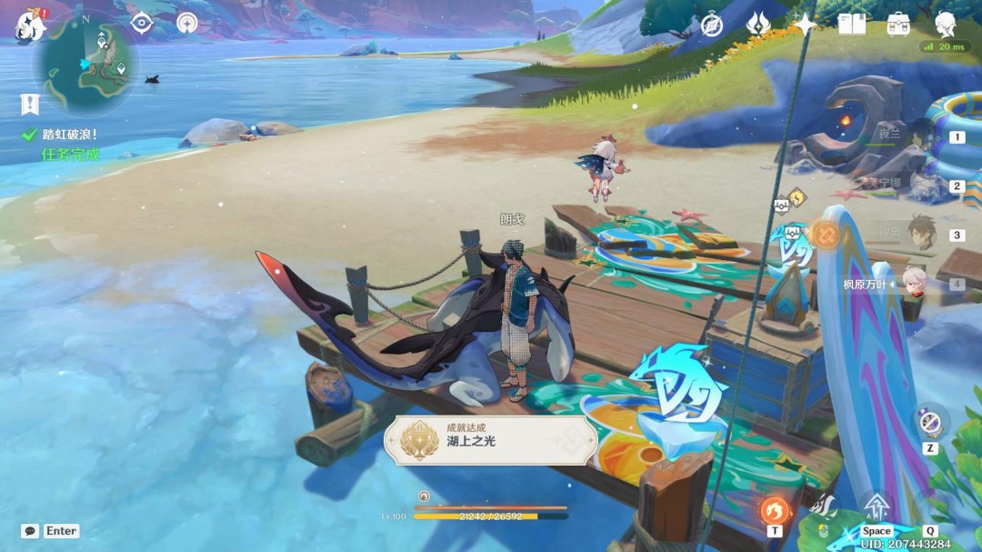 对话结束,完成任务「踏虹破浪!」,获得成就「湖上之光」,获得珍贵的宝箱和普通的宝箱