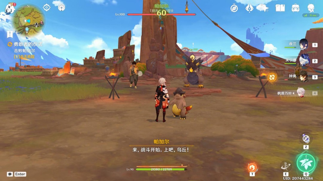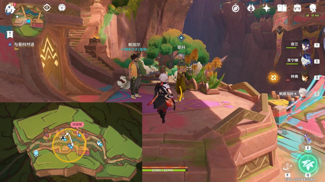传送曜石图腾柱·「回声之子」,前往吊桥对面,与曼科对话