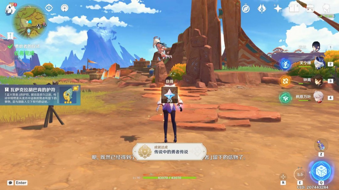 对话结束,完成任务「勇敢者的仪式」,获得成就「传说中的勇者传说」