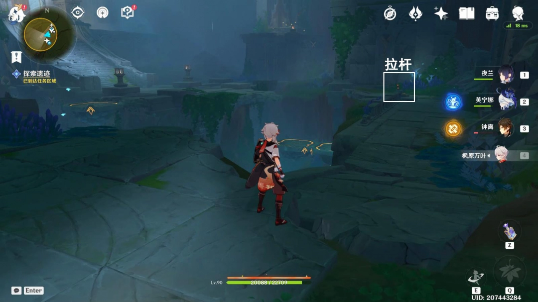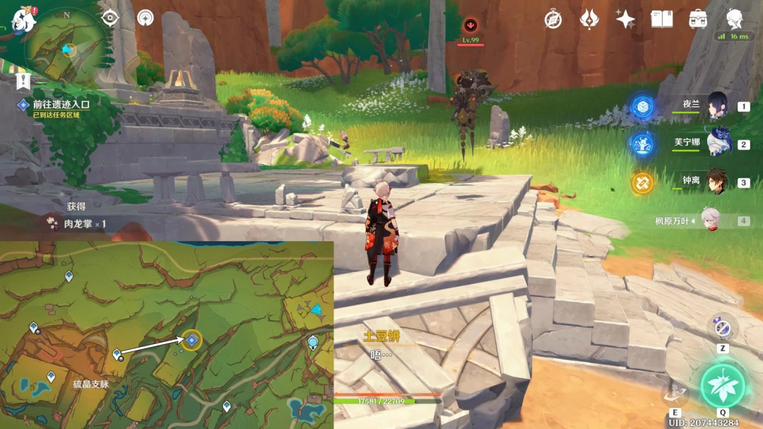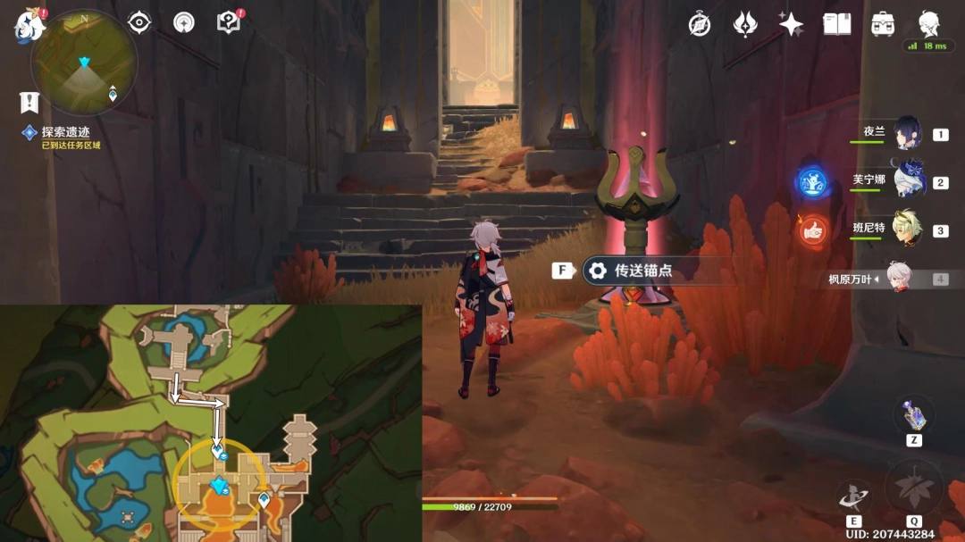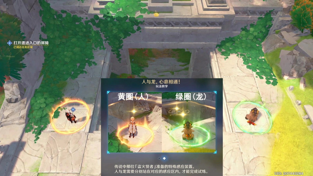 在遗迹入口,交互“放置”,出现任务提示,选择“继续任务”
