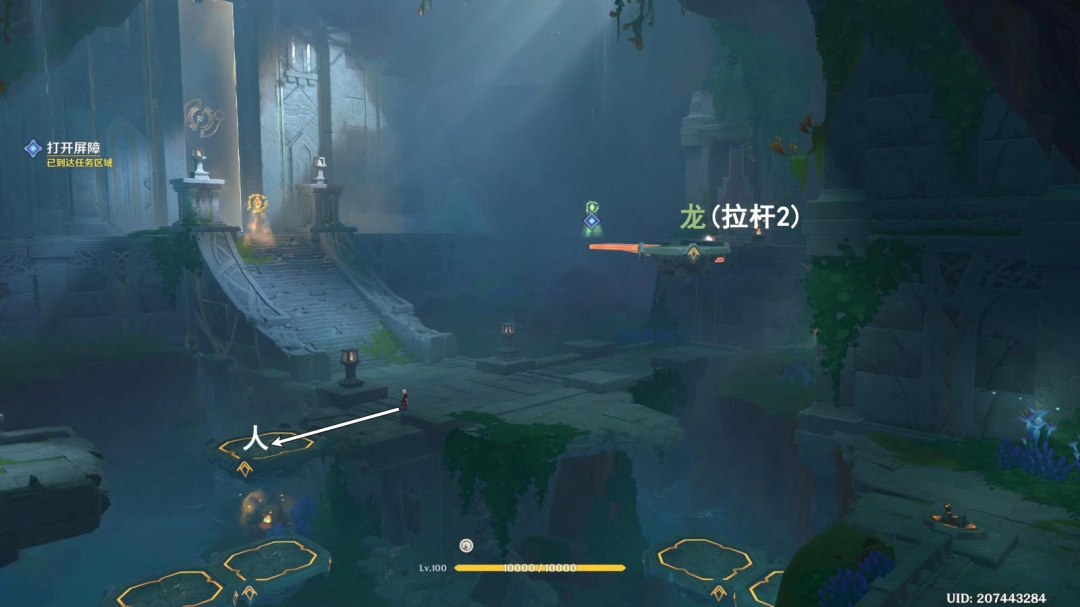 step-3:人和龙都前往图中位置,操作拉杆2;