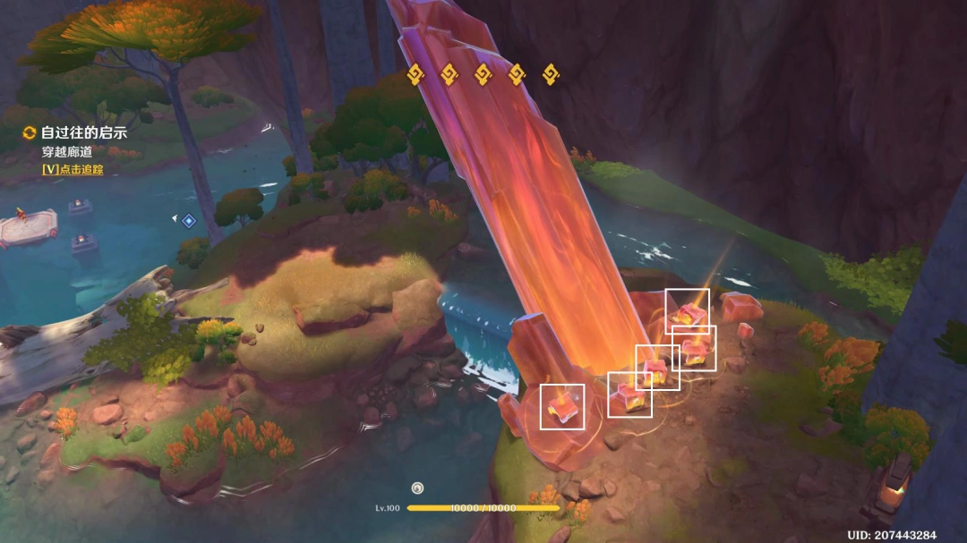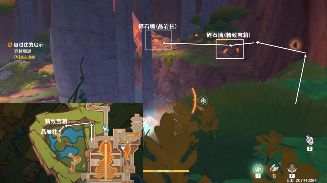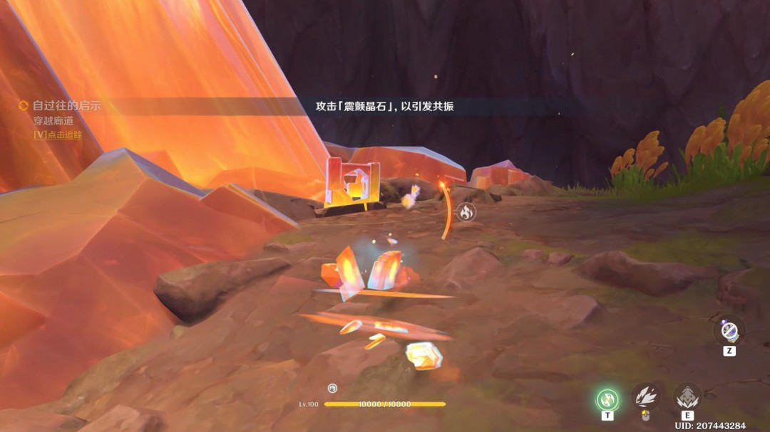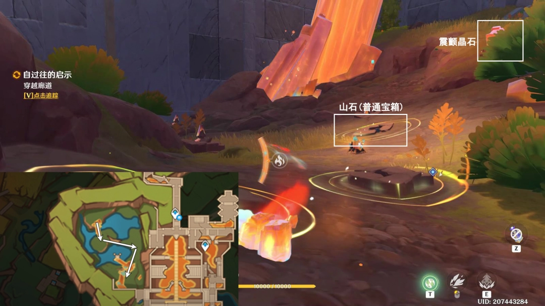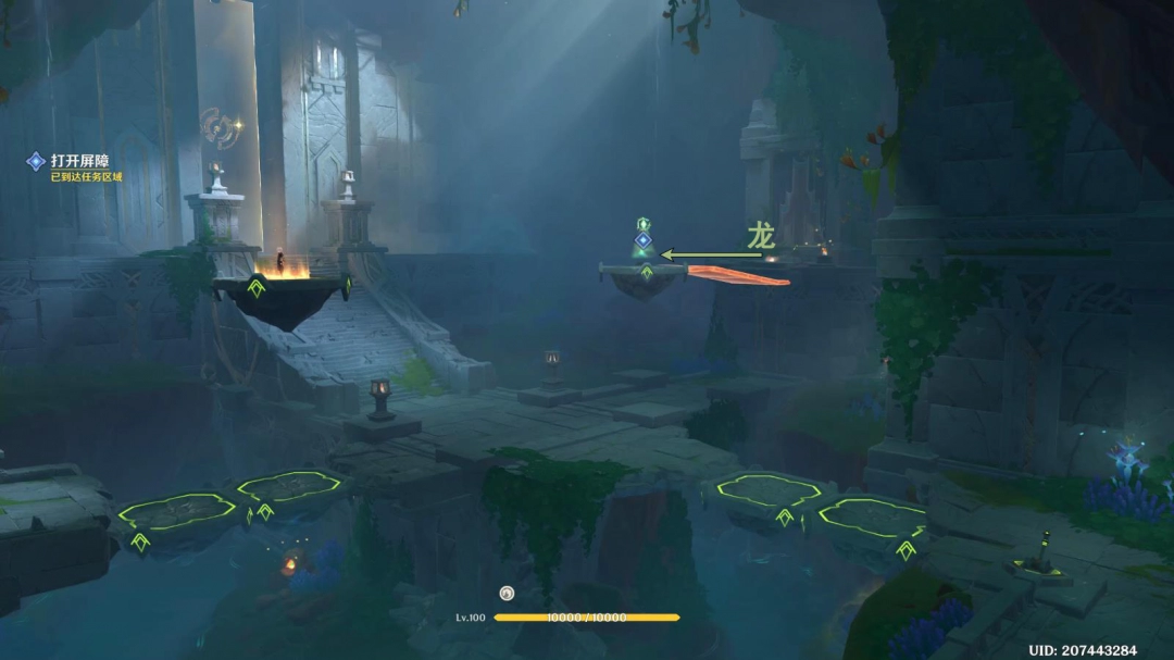 按图中指引路线走,龙使用战技,攻击山石和震颤晶石,获得普通的宝箱