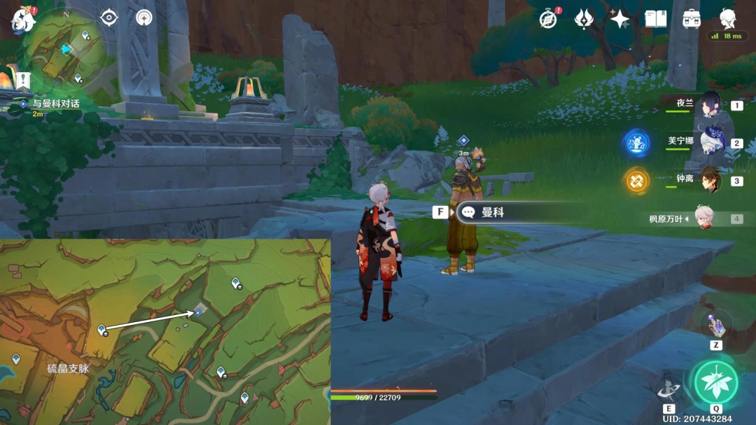 传送硫晶支脉东北方向锚点,往地图的东北方向走