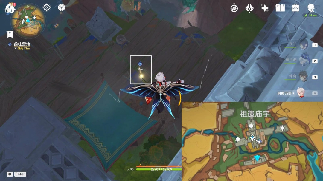 传送祖遗庙宇南方向锚点,往地图的南方向飞