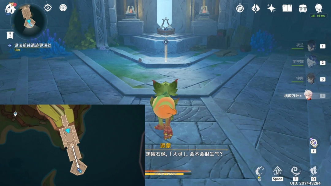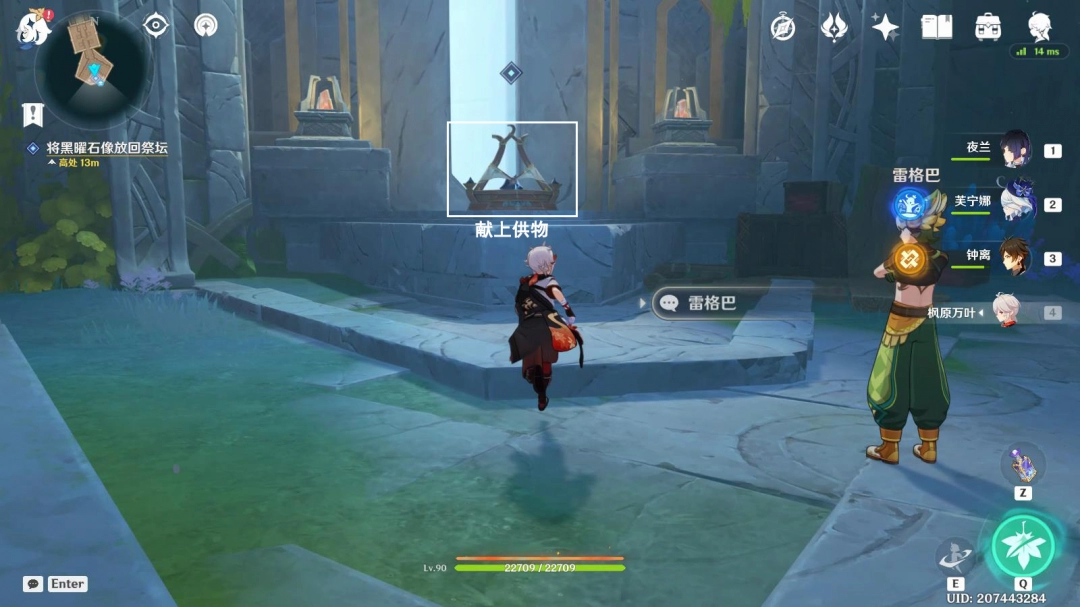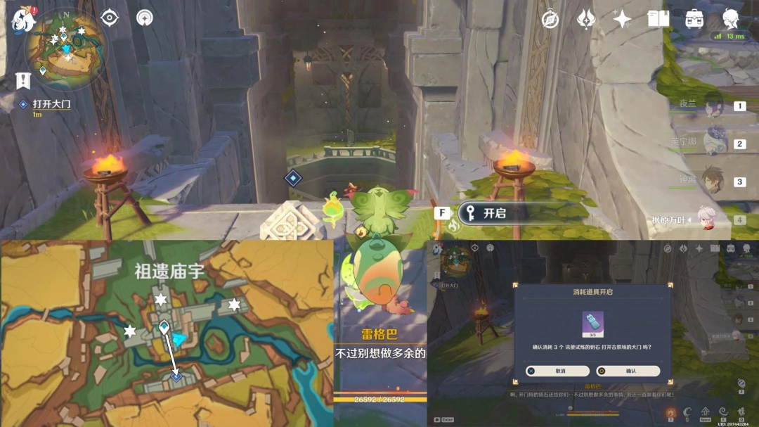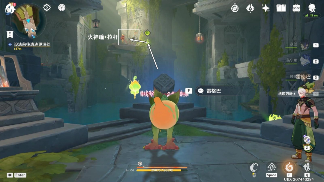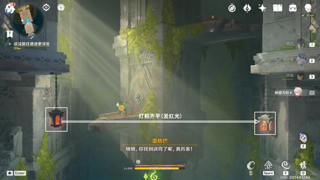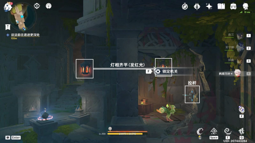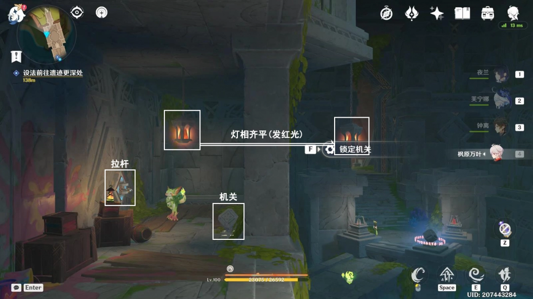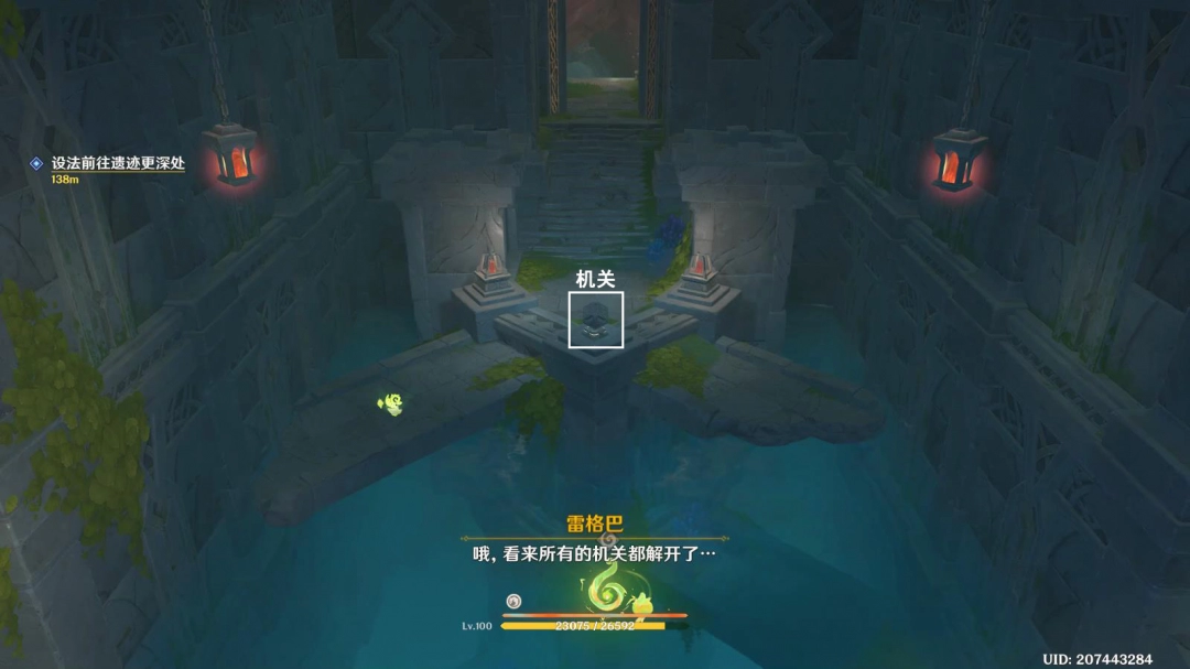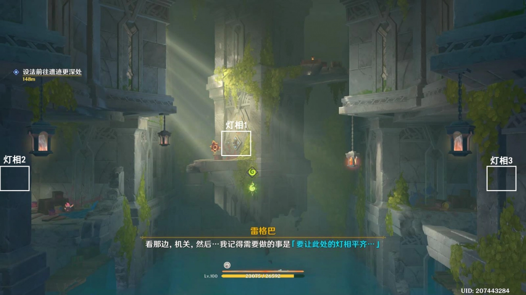 完成灯相解谜,解锁机关,交互机关“操作”,遗迹水位下降