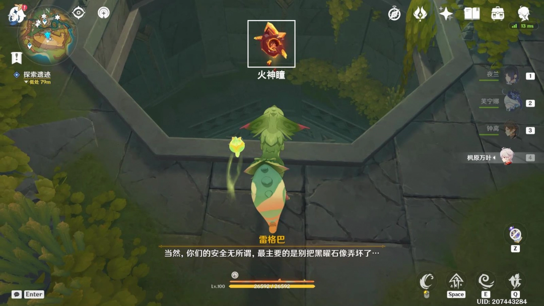 前往遗迹内,获得火神瞳,跳下遗迹底部