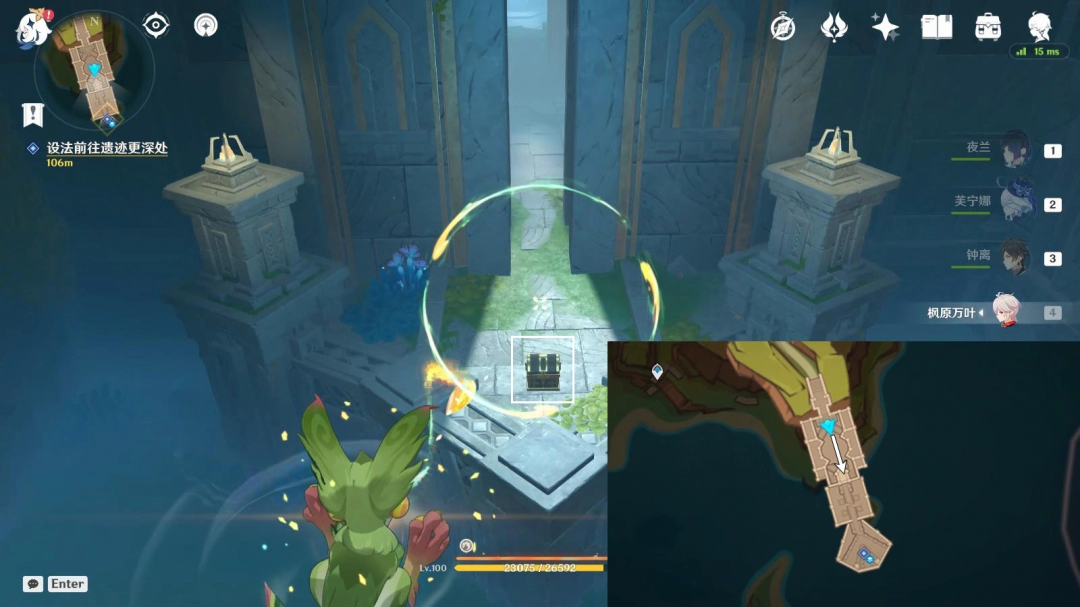 按图中指引路线走,前往下方遗迹,获得珍贵的宝箱