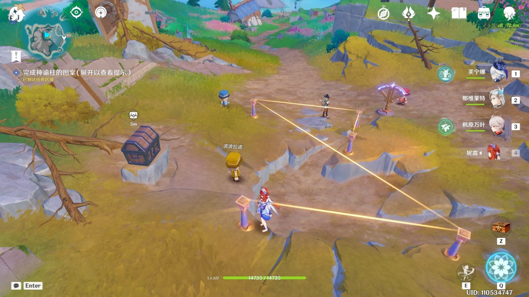 连好后会给个精致宝箱,等对话完成后波波拉诺会给你三个宝箱。大哥!