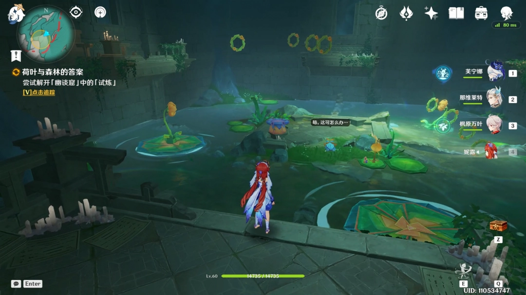 起飞后来到周期升起的荷叶上,坐荷叶上去。