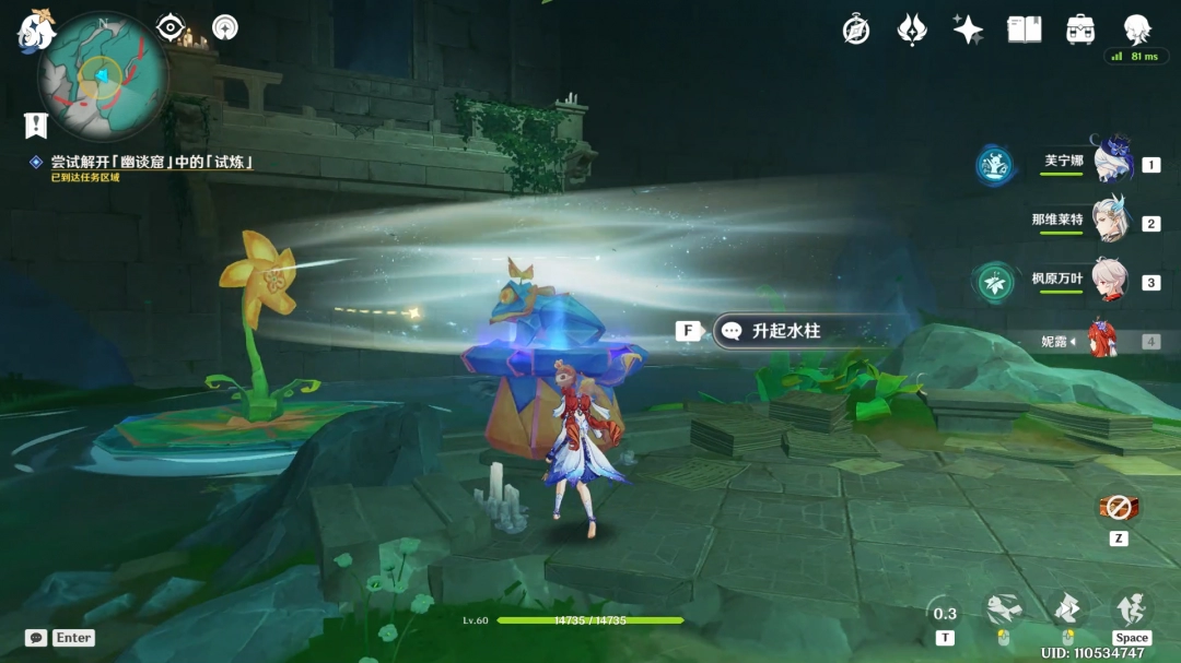 开启后顺便把水柱也升起。