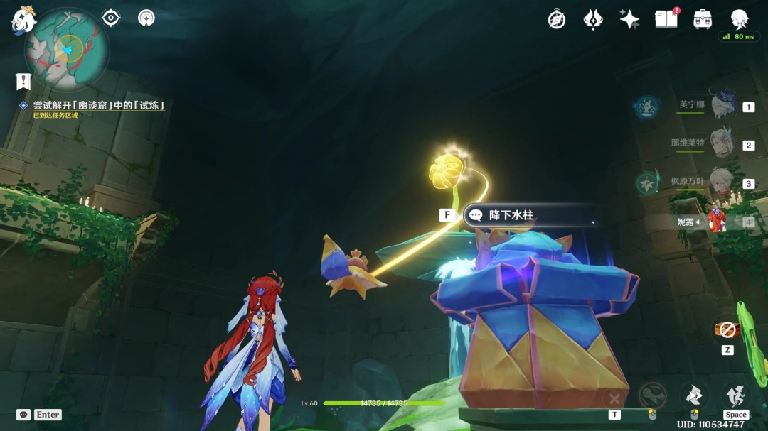 随后点试试这边的鼓,让青蛙过来降下水柱。