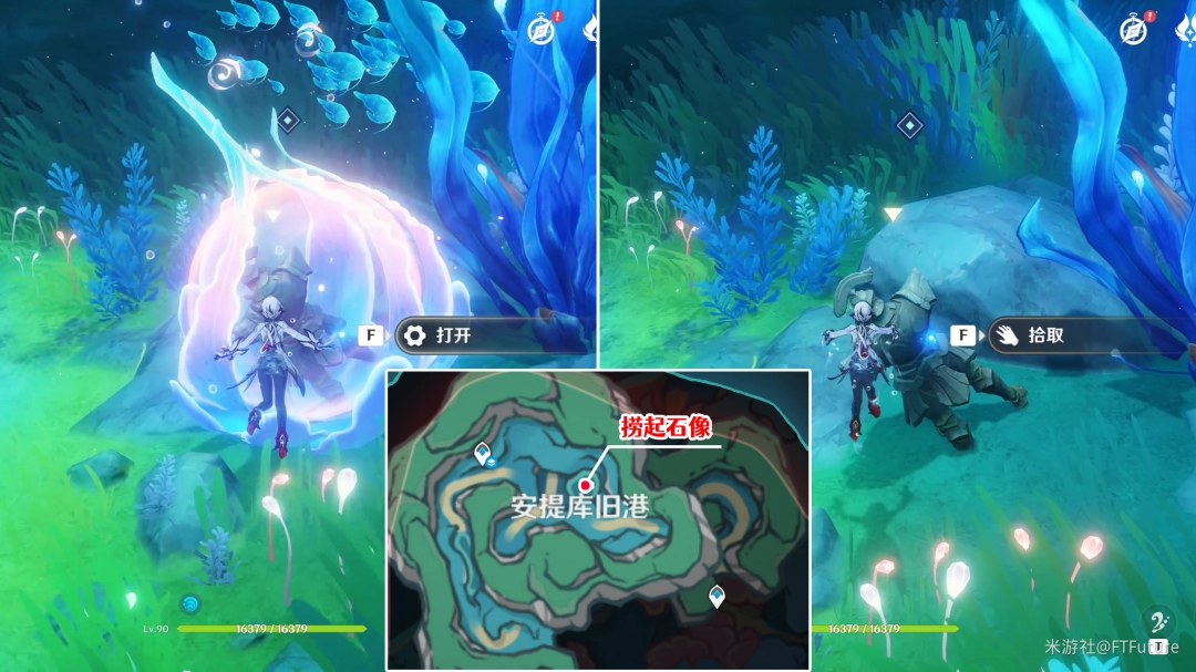 之后,我们潜入旁边的水下,打开海草后拾取石像即可。