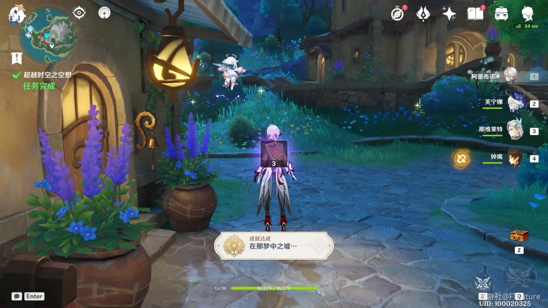 最后,我们回到佩特莉可镇触发剧情,即可完成世界任务「超越时空之空想」。