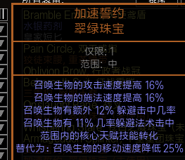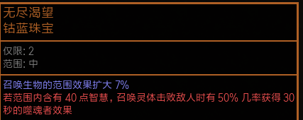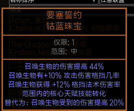 1.深渊苍白珠宝: 最大生命、近期使用召唤技能增加%召唤伤害、召唤生物增加%施法速度,没钱的时候3选2即可,记得其中一颗必须带“召唤生物%攻击击中致盲敌人”、“召唤生物%攻击%击中嘲讽敌人”