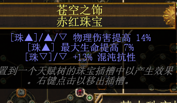 小珠宝选择:最大生命>持续伤害加成>混沌持续伤害>混沌抗性>物理伤害/混沌伤害/伤害