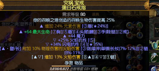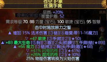 ▲复合法伤词缀(词缀标签:法术)或者单条技能+1(词缀标签:法术,火焰)或者附加转混沌伤(词缀标签:混沌,火焰,物理)都可以,有啥用啥吧