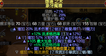 我这个盾牌是用改造洗出了法术格挡+图腾上限,上个富豪又出了攻击格挡,然后附魔个施法速度就这么带着,其他词缀是随着打出庄园工艺一点一点上的