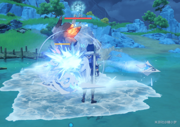 凯亚准备好Q,先用E冻住大丘丘人,心中默数4~5秒,再放Q,这样就能冻住敌人10秒了。(我没截上)