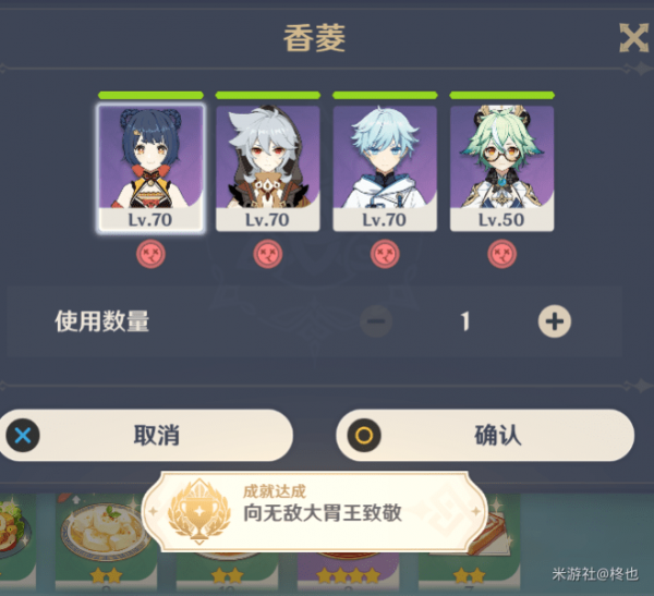把队伍中4个角色都吃撑(状态条满)
