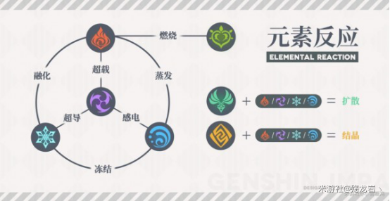 反应结果:伤害为触发元素,伤害为系数式增加,可暴击,反应产生会清除怪物附着水,火元素.