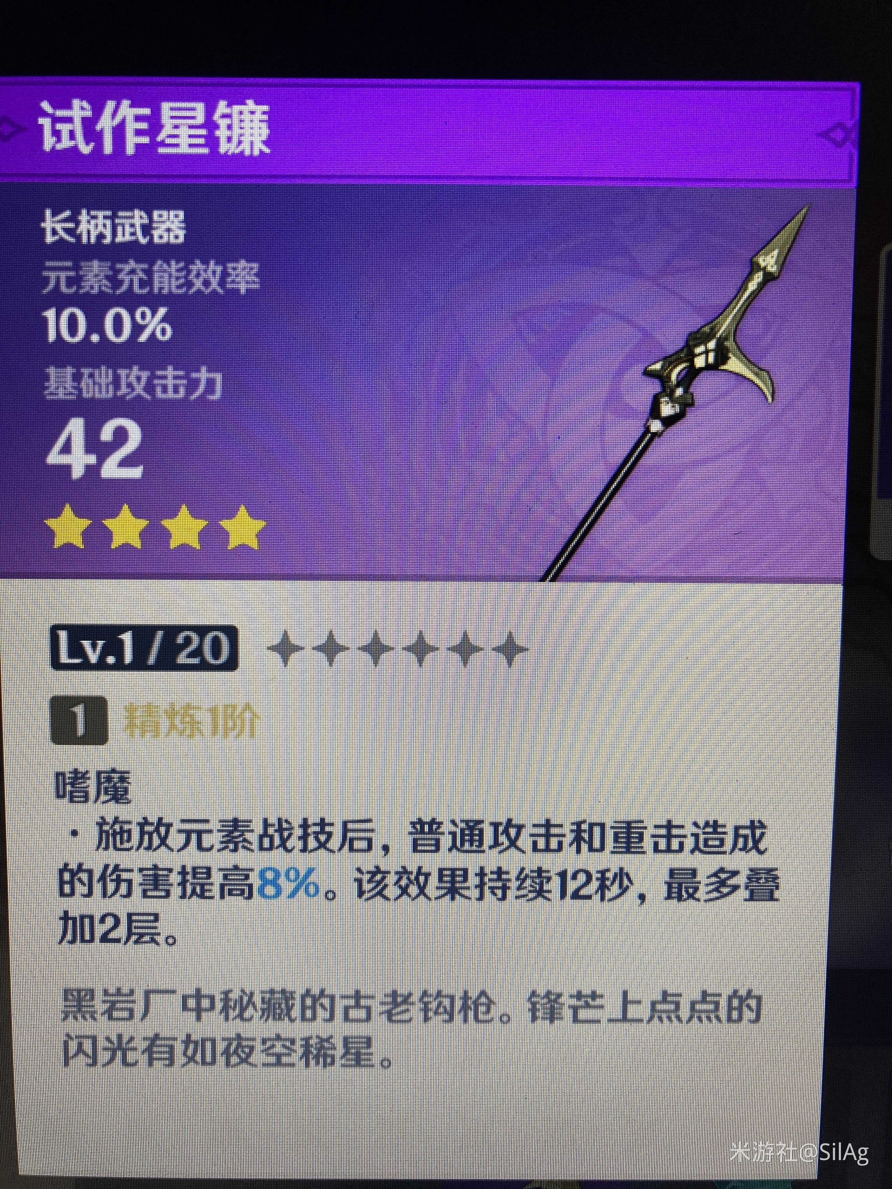 香菱大招充能极长,消耗80能量(游戏里耗能最多的角色之一),而且冷却很短,相信香菱玩家都遇到了冷却好了,充能不够的情况,所以香菱更适合用【试作星镰】。