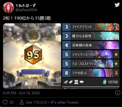 来自日服选手てれたびーず的奇迹法,最高打到了95名。