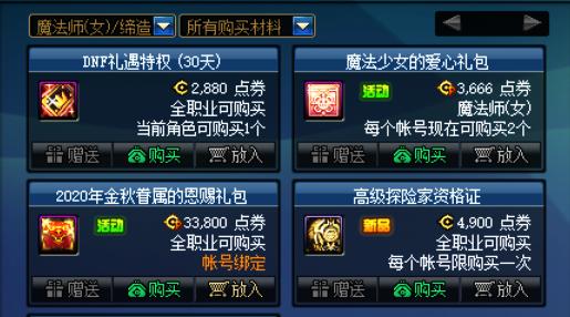 DNF魔法少女的爱心礼包获得方法在商城购买,礼包3666点券,可以用代币券购买,每个帐号可以买2次,女魔法师的三觉礼包,和原来的礼包完全不一样,不只是价格便宜了,礼包的性价比也完全不是一个档次的。