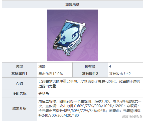 其次可以使用流浪乐章,单纯因为词条为暴击伤害,在圣遗物方面着重选择暴击率,也能一定程度上达成暴击爆伤的平衡。技能CD较长是短板,抽到元素精通对于凝光来说相当于无加成,所以比较看脸,但此武器可以通过祈愿获得,满精炼后技能增幅极高,也许在游戏的后期,某些特定场合,可以使用凝光作为副C角色出场,在流浪乐章技能持续时间内打一套爆发就下场,也不失为一种新的思路。