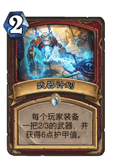整套牌当中最为关键的牌之一,所以放到第一个来说,上个月一整个月虽然玩起来很爽快,但是在很多对局当中还是会被快攻给抢死,诸多解牌都解不过来,于是后来试着加入了两张武器计划,于是从此便开始了对快攻的彻底碾压。