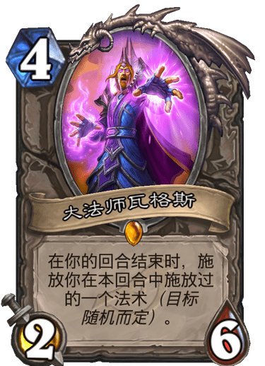 整套牌的核心之一,在这套牌当中的瓦格斯是非常强的,往小了说可以使体能研习多拿一张,可以亡者之牌洗两张,可以武器计划叠两次甲,往大了说可以使得招募牌触发两次,而在后手很多时候我们都是四费瓦格斯五费跳币招募,运气好的话也可以触发两次,同时瓦格斯自己被招募牌拉出来的话,也是能够触发两次的,非常的赚,而在这套牌当中瓦格斯的上限是被空间撕裂器复制出两个,这样一来在回合结束时两个瓦格斯都会触发空间撕裂器,场上瞬间就有六个怪,且都是复制,十费强悍,稍微要注意一下的就是瓦格斯的胁迫,是可以直接消灭任意随从的,而不是受伤随从,这一点当瓦格斯在场时需要谨慎。