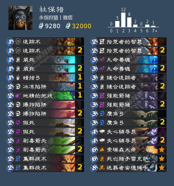 娱乐指数:★★★< p style="text-indent:2em;"> 我这套箭猪是偏向于防守的,之前有试过完全靠猎人奥秘体系打前期,但再目前环境还是行不通,使用就另辟蹊径搞了这一套。