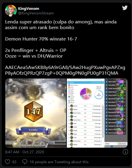 来自外服玩家KingVenom的残片瞎,最高打到了147名。