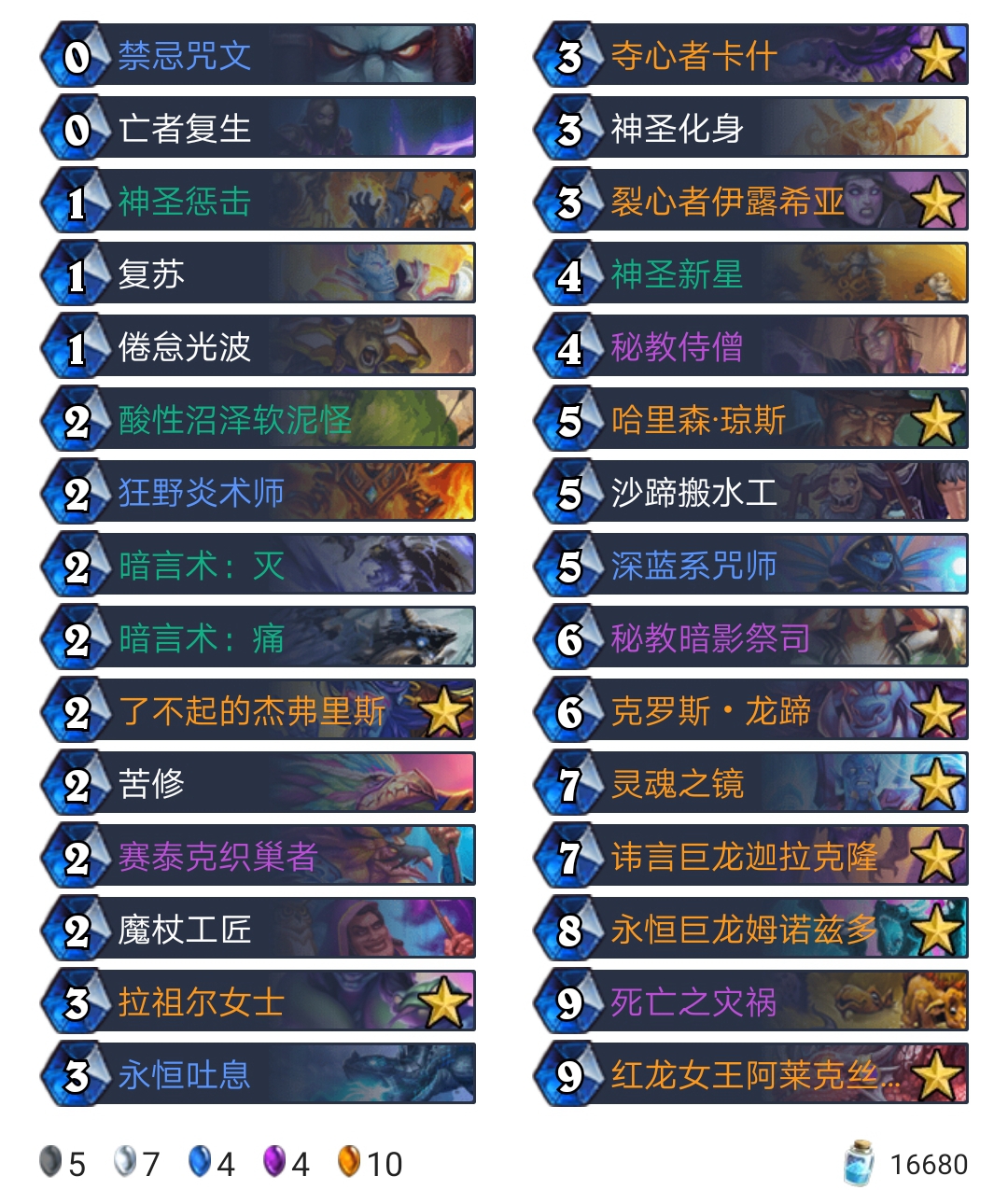 现在的环境正处于多版本并存的形势当中,所以其实上传说有一定难度,需要一定的技巧才可以(扎针圣骑其实玩起来难度明显就很高了)。我的这套牧师也是看对战情况与技巧的,主要在于那张裂心者——伊露希亚。