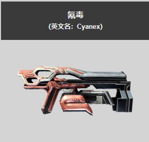 星际战甲游戏中,氰毒获得方法是玩家使用蓝图制作获得,氰毒是一把由Corpus生产的并合手枪,在氰毒的设计中融入了Corpus与Sentient技术,射速较快,自带毒气效果,子弹在与障碍物发生碰撞后会爆发一小股毒气并继续沿对角线弹射,有小范围追踪效果。