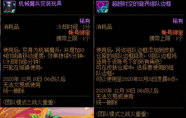 DNF团队模式之战火重重玩法打团就可以参加,除了每周都能领取一次的门票外,通关次数可以获得其他的奖励。超时空可以获得变装玩具和组队边框。普雷也是变装玩具和组队边框。希洛克一样给变装玩具,不过组队边框换成了伤害字体。