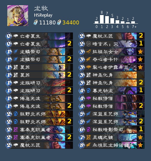 “在玩龙牧这套卡组时建议旁边摆上一本《白露的龙牧攻略》。”从这个版本龙体系重新引入牧师的构筑,牧师的思路就已然不同于上个版本的控制思路,所以现在的龙牧的一个构筑趋势是暮光幼龙的引入,增强卡组的战场性,构筑上更是可以直接放弃裂心者满编暮光幼龙。既然说到这里,着重提一下龙牧中的裂心者使用,除去丢掉对手的重要卡这一作用之外,龙牧中的裂心者有很多时候会充当一个另类的“洛欧塞布”。之所以这么说,是当你把龙牧当作是一个压场的节奏型卡组就可以理解了,利用暮光幼龙等龙的研习效果提前压场,配合赛泰克等滚雪球,然后在手里有裂心者时注意费用和手牌情况(没有优质解),在一个很合适的时候直接换给对面,利用场面直接压死对手。而这需要数个回合对手牌跟之后节奏的规划,这也是牧师的难点所在,大数据的牧师数据很不好看很大的原因在于绝大多数玩家对裂心者的使用很成问题,而这往往也会成为区分现在牧师熟练度的一个很好的指标。如果读者对自己的裂心者使用没那么自信,建议是干脆携带第二张暮光幼龙,虽然减少了更多的可能性,但是不会因为一些“降智操作”丢掉本该拿下的对局。至于留牌和诸多细节,建议熟读《白露的龙牧攻略》。